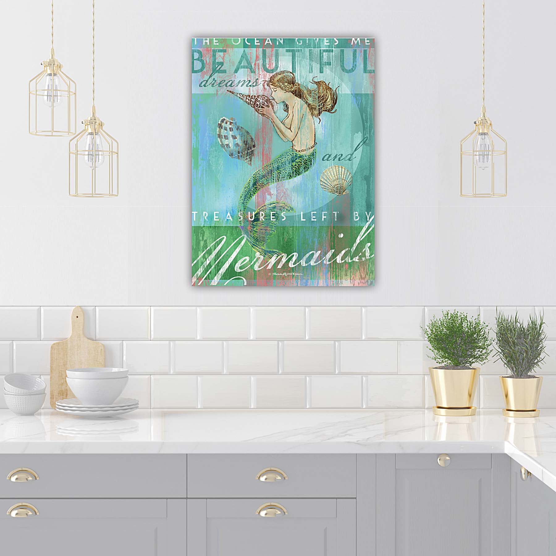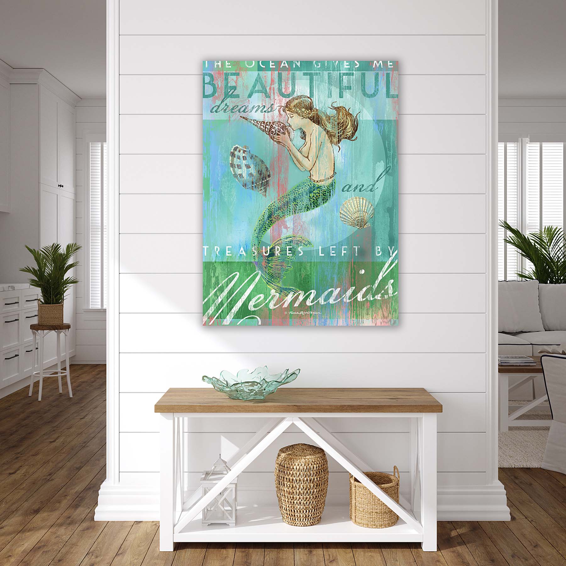 "The ocean gives me beautiful dreams and treasures left by mermaids." This piece is the perfect addition to your coastal art collection, especially admired by mermaid-lovers. Personalize it with hidden names, dates, and locations to make unique birthday gifts, baby gifts, Christmas gifts, wedding gifts, and more.